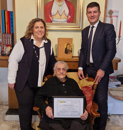 Nel corso dell’incontro, il responsabile provinciale e la direttrice hanno consegnato alla ultracentenaria un attestato, a suggello dell’affetto e della fiducia dimostrati nei confronti dell’Azienda nel corso degli anni.