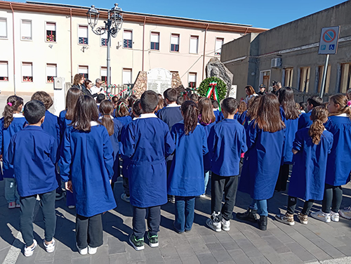 Alla cerimonia, svoltasi presso il monumento ai caduti, hanno presenziato il Vice Sindaco Alberto Pittoni e la Stazione dei Carabinieri. Dopo i saluti del Vice Sindaco gli alunni hanno recitato pensieri e poesie sulla Pace. La cerimonia si è conclusa con il canto dell'Inno Nazionale. <Ricordare i caduti di ogni guerra come hanno fatto gli scolari - ha sottolineato la referente scolastica Daniela Massa - continuerà ad insegnarci quanto il loro sacrificio sarà sempre un valore prezioso per la pace e per l'umanità>. Tito Siddi