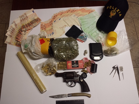 Vasta operazione di controllo della Polizia per frenare lo spaccio di droga nella zona di Iglesias. Arrestato Pasquale Dettori, 60 anni, sequestrate droga, munizioni e una pistola. Identificate 91 persone ed eseguite due perquisizioni. L'operazione è scattata ieri sera e ha visto impegnati gli agenti del Commissariato di Iglesias, gli uomini del Reparto prevenzione crimine e due unità cinofile antidroga e antiesplosivo. Sotto i riflettori sono finiti i Comuni di Iglesias, Gonnesa, Domusnovas e Villamassargia. A Gonnesa è stata fermata per un controllo l'auto condotta da Dettori: i poliziotti hanno trovato un coltello a serramanico, 2 grammi di marijuana e 660 euro, che sarebbero stati guadagnato con lo spaccio. Gli agenti hanno poi perquisito sia la casa del 60enne che il luogo in cui lavora. In casa sono state trovate 50 cartucce calibro 6,35, quattro grimaldelli, 105 grammi di marijuana e altri seimila euro, mentre nell'armadietto a lavoro è stata trovata la pistola.