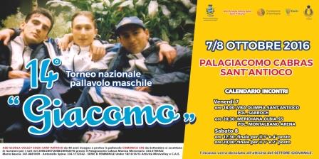 Si svolgerà venerdi 7 e sabato 8 ottobre il 14/mo Torneo Nazionale di pallavolo Memorial Giacomo Cabras". Il torneo si terrà nel palagiacomocabras a lui dedicato come sempre una settimana prima che inizi il campionato di Pallavolo dove gioca l'Olimpia Sant'Antioco previsto per il 16 ottobre prossimo. Quest'anno le squadre partecipanti saranno: La Vba Olimpia Sant'antioco, Polisportva Sarroch, Montalbano Arena MC e Olbia. La prima gara si giocherà venerdì alle 18 tra la Vba Olimpia e Polisportva Sarroch a cui farà seguito la gara Montalbanoi Mc e Olbia. Sabato 8 ottobre le finali che si svolgeranno alle 17,30 tra le perdenti delle gare di qualificazione il 3 e 4 classificato e 20 per le vincenti delle gare di venerdì per il Primo e Secondo Classificato.