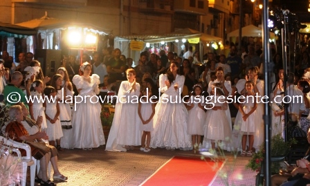 Prendi un meraviglioso spicchio di luna argentata, incornicialo con un manto di stelle, lasciati trasportare da note suadenti e diventa impossibile non godere del magico spettacolo che la moda da sempre regala. A Gonnesa, lunedì sera, in piazza Asquer, trine, intagli, merletti e stoffe pregiate legate al passato, si sono intrecciate con i tessuti del presente: il vintage che riporta indietro a tempi lontani, l’abito sardo che rievoca tradizioni nostrane e poi il moderno testimone dei tempi che cambiano. Ragazze, bambine e giovani donne hanno sfilato con naturalezza, regalando sorrisi e simpatia al numeroso pubblico che ha applaudito dimostrando di gradire lo spettacolo. Non solo moda… ma anche canzoni del momento hanno lasciato spazio alla musica dell’organetto, sulla quale si sono esibiti alcuni componenti del gruppo folk Sant’Andrea di Gonnesa. Grande soddisfazione per Cristina Balloi, organizzatrice dell’evento, a cui va riconosciuto il grande impegno e l’eleganza con cui ha gestito le uscite delle modelle che si sono messe in gioco come testimonial di una femminilità senza tempo, capace di catturare l’attenzione e l’approvazione di tutti i presenti… Appuntamento all’anno prossimo, sotto lo stesso cielo stellato.