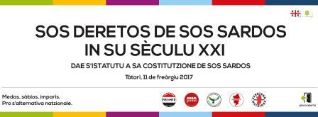 l'11 febbraio convegno a Sassari sullo Statuto Autonomistico e di come poterlo trasformare nella Carta fondamentale dei sardi. Arrejonamos de is deretos de is sardos, de sos chi tenimos ma chi meda bortas non impreamos a prenu, de sos chi at esser ora de si dos pigare. Faeddamos de s'istatutu autonomìsticu e de comente du furriare in Carta fundamentale de is sardos. Nde faeddamos cun fèminas e òmines de importu de su mundu polìticu sardista e indipendentista e cun istòricos, costitutzionalistas e politòlogos de gabbale.