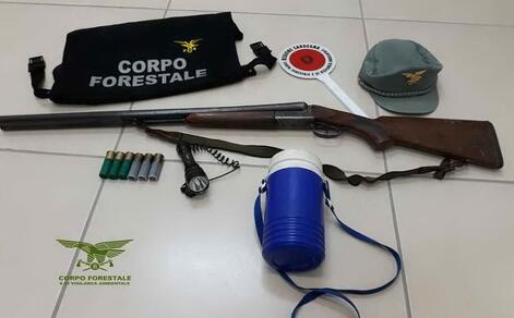 I due venivano fermati, identificati e perquisiti dagli Agenti forestali che sottoponevano a sequestro un fucile calibro 12 appartenente al S.C.