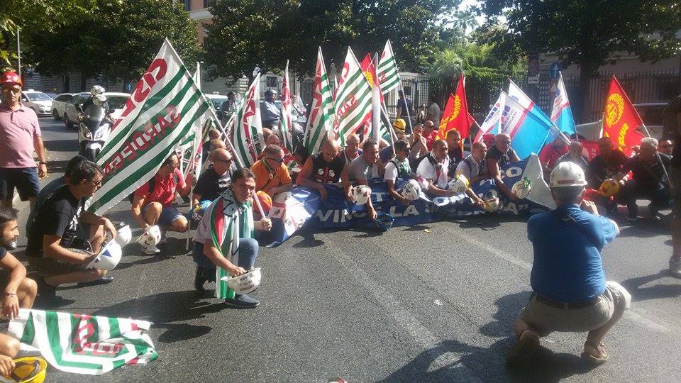 Le due foto allegate sono state scattate stamane a Roma, durante la manifestazione davanti al Mise, da Romeo Ghilleri.