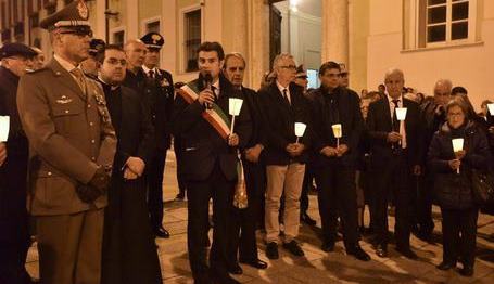 FIACCOLATA A CAGLIARI - Fiaccolata ieri sera davanti alla Cattedrale di Cagliari per ricordare le vittime degli attentati di venerdì scorso a Parigi. La giornata di commemorazione è iniziata alle 19 con una messa nel Duomo. Poi, all'esterno della chiesa, l'accensione dei lumi per la fiaccolata. Presenti, tra gli altri, il governatore Francesco Pigliaru, il presidente del Consiglio regionale Gianfranco Ganau, il sindaco di Cagliari Massimo Zedda e il console francese Andrea Dore. Un no, commosso, al terrorismo.(ANSA)