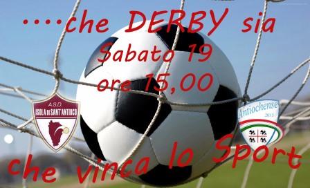 Primo derby questa sera alle 15 della storia calcistica di Sant'Antioco. A diputarlo nello stadio comunale cittadino sono, per il Campionato di 2 categoria, Isola di Sant'Antioco - Antiochense Le due squadre si presentano in campo con lo stesso punteggio in classifica: 9 punti. La settimana scorsa le due sqaudre hanno vinto entrambe: l'Isola in trasferta e l'Antiochense in casa.