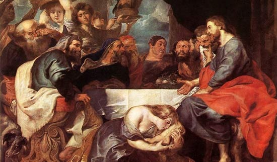 Simone, di cui abbiamo sentito dal racconto evangelico, critica in cuor suo Gesù per il suo comportamento nei riguardi della peccatrice “si lascia  baciare ed abbracciare”; Gesù, con affetto e amore, corregge Simone, facendolo riflettere profondamente.