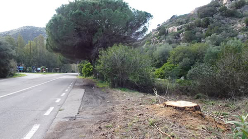 Incredibile ma vero: un maestoso albero di pino secolare è stato abbattuto! E' successo di recente anche se non è possibile stabilire tempi e data dello scempio. Le immagini però testimoniano la fine ingiusta di un albero che, si trovava nei pressi del bivio di Chia, nel territorio del comune di Domus de Maria, lungo la Strada Statale 195, che collega Cagliari a Teulada.